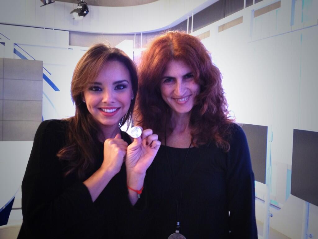 Hoy he triunfado: He conseguido mi foto con Chenoa, he entrado en el plató la he visto cantar y luego le he regalado la chapa de Jaramagos, la de la ilustración de la vespa. A ella le ha encantado, en serio! le ha encantado! y le he dicho que entre en nuestra web que no se arrepentiría. Luego le he pedido una foto con la chapa y me ha dicho: "cómo no! por supuesto!" y voilá , aquí estamos las dos!